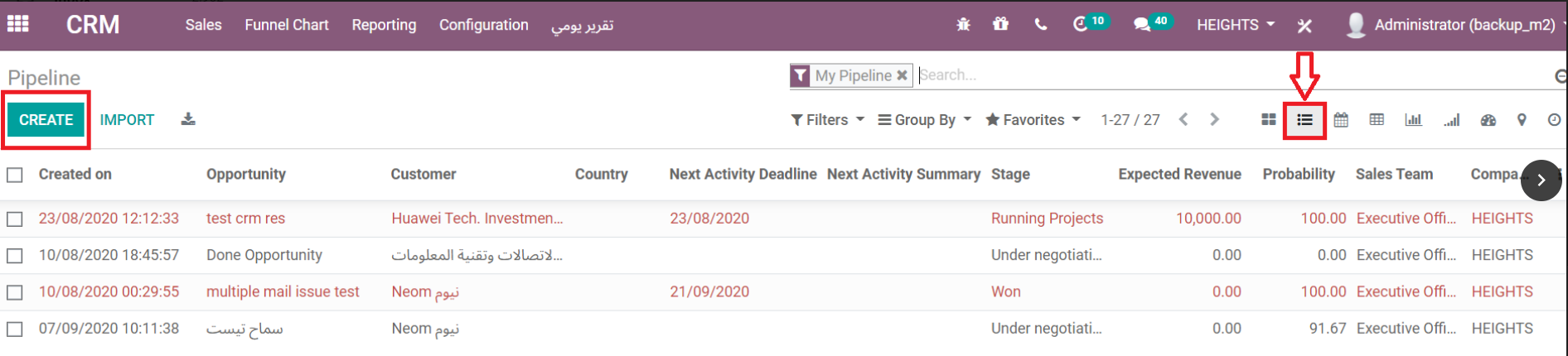 لإنشاء فرصة جديدة يرجى التبديل إلى طريقة عرض View List , وسيظهر معك زر الإنشاء .